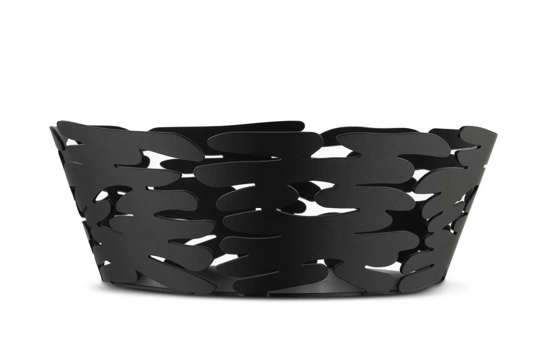 De Alessi Barket schaal is vervaardigd uit zwartkleurig gecoat, roestvrij staal. Het ontwerp van de schaal is gebaseerd op de schors van boom, is 6,5 cm hoog en heeft een diameter van 18 cm. Ontworpen door Michel Boucquillon en Donia Maaoui. Gebruik als bijvoorbeeld een fruitschaal of broodmand.