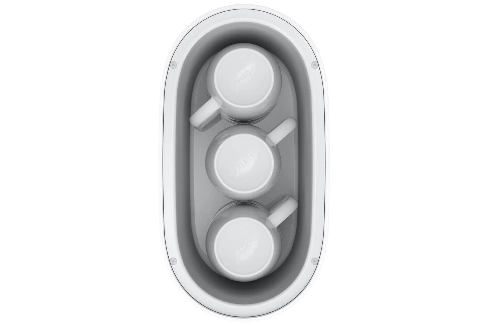De witte kopjeswarmer van JURA verwarmt 8 espresso-, 6 koffie- of 4 cappuccinokopjes tegelijkertijd. De koppenwarmer is vervaardigd uit transparant en wit aluminium, met 2 lades van roestvrij staal. De kopjes worden constant verwarmd op een temperatuur van ca. 55 °C. Door de JURA kopjeswarmer af te dekken voorkomt u warmteverlies en bespaart u energie. Gebruik de kopjeswarmer om uw espresso- of koffiekoppen te warmen voordat u er koffie in schenkt.