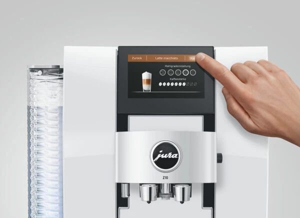 Met de JURA Z10 zet u tot wel 32 verschillende koffiespecialiteiten, zoals warme én koude koffie specialiteiten. Vul de machine met hele koffiebonen en met een paar klikken zet u heerlijke koffie. De Product Recognising Grinder (P.R.G.) zorgt ervoor dat via de elektronische besturing de precisiemolen zichzelf binnen een fractie van een seconden instelt op de vooraf gedefinieerde maalgraad. De machine is ook voorzien van het Automatic Grinder Adjustment (A.G.A.). De A.G.A. zorgt voor een constant perfect resultaat. De machine heeft een in hoogte verstelbare koffie-uitloop (78 – 150 mm) zodat u verschillende kopjes kunt gebruiken.