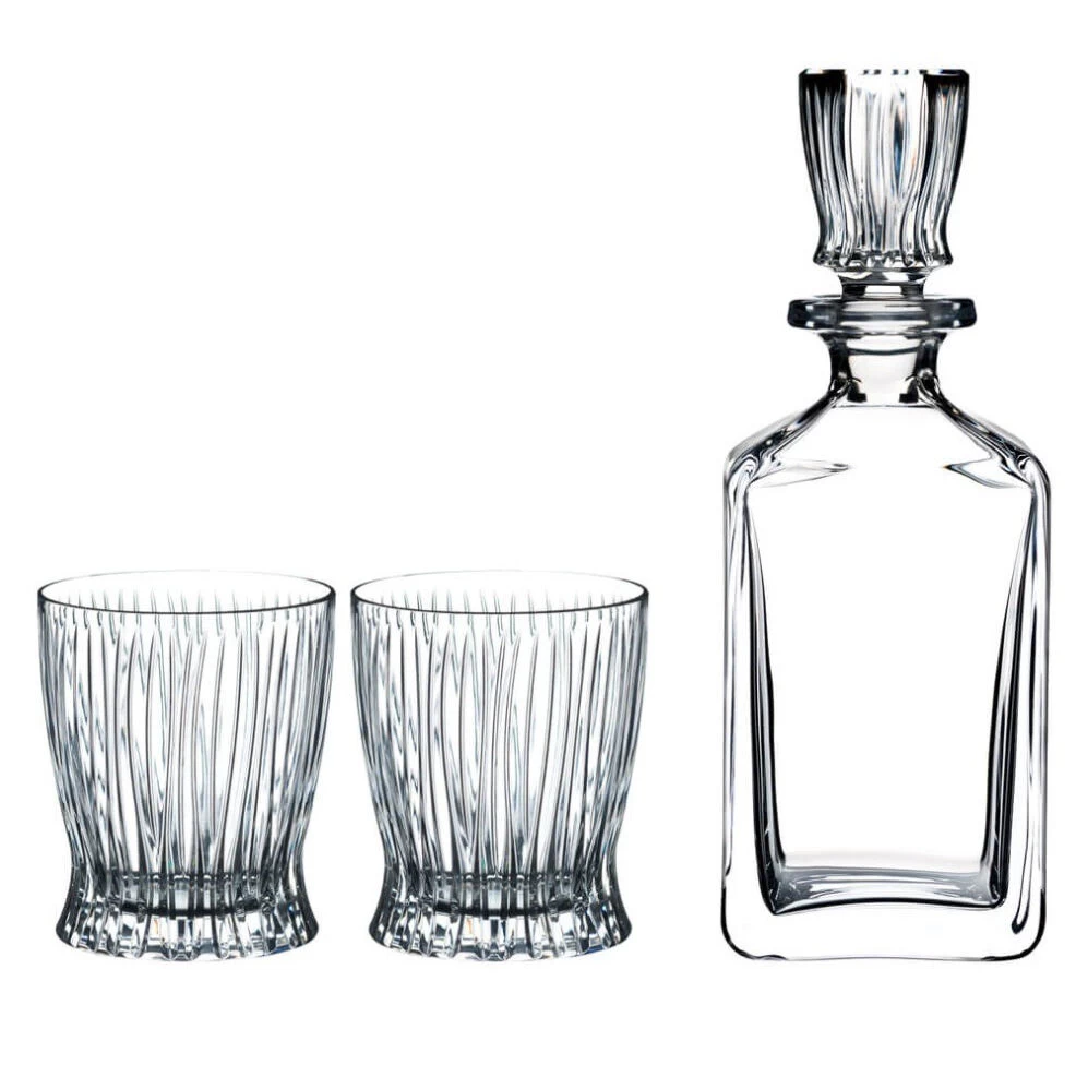 De Riedel Fire whiskyset bestaat uit een karaf en twee glazen. De glazen zijn vervaardigd uit loodvrij kristalglas en hebben een inhoud van 295 ml. Elk glas heeft een hoogte 9,8 cm. Gebruik het glas voor het drinken van diverse soorten whisky. De karaf is eveneens gemaakt van kristalglas en voorzien van een gedecoreerde stop.Â