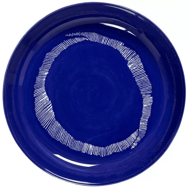 Het Serax Feast by Ottolenghi bord heeft een diameter van 22 cm en is 4 cm hoog. Het aardewerken bord is blauw van kleur met een witte schildering.