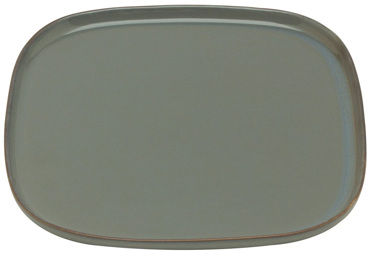 Het vierkante Serax Terres de Rêves bord heeft een lengte en breedte van 25,5 cm en een hoogte van 1,5 cm. Het van stoneware gemaakte bord is geglazuurd met smokey blue email.